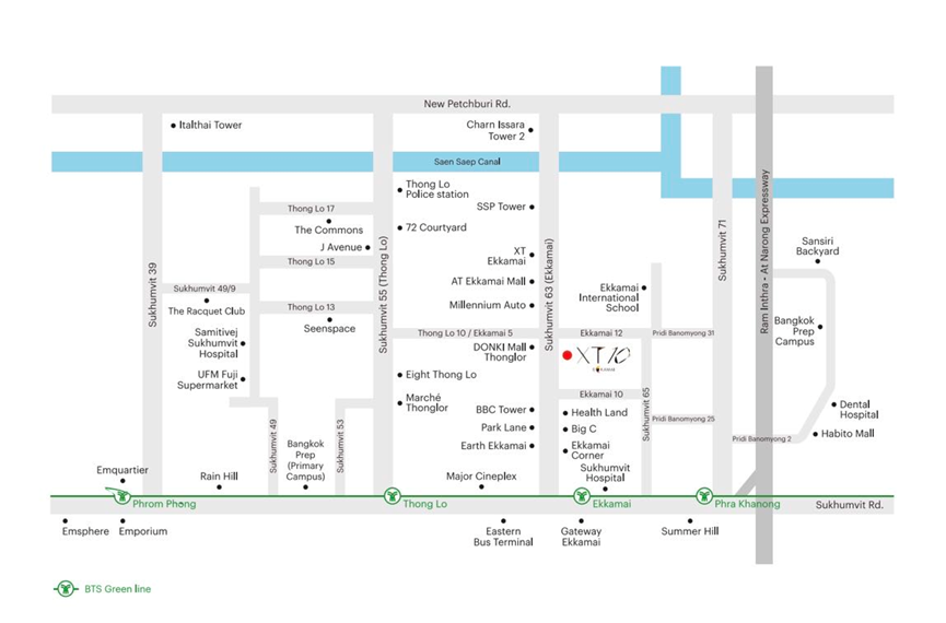 XT10 is strategically located between Ekkamai Soi 10 and 12 — a sweet spot that enjoys the spillover from Thonglor’s energy while maintaining Ekkamai’s residential comfort.