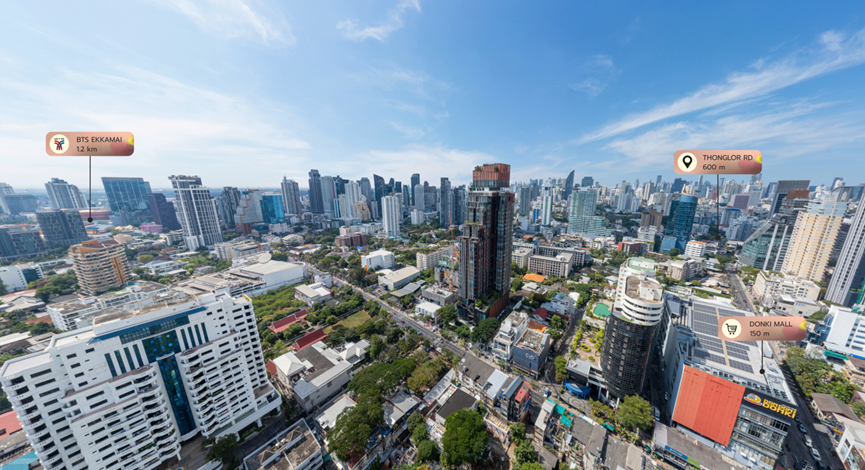 In practical terms: Donki Mall (Don Quijote) is just a 150-meter walk away, offering a 24-hour Japanese supermarket, dining, and fitness spaces. Thonglor Road is about 600 meters away, making nightlife easily accessible. Within a 1 km radius, international schools and hospitals are fully covered.