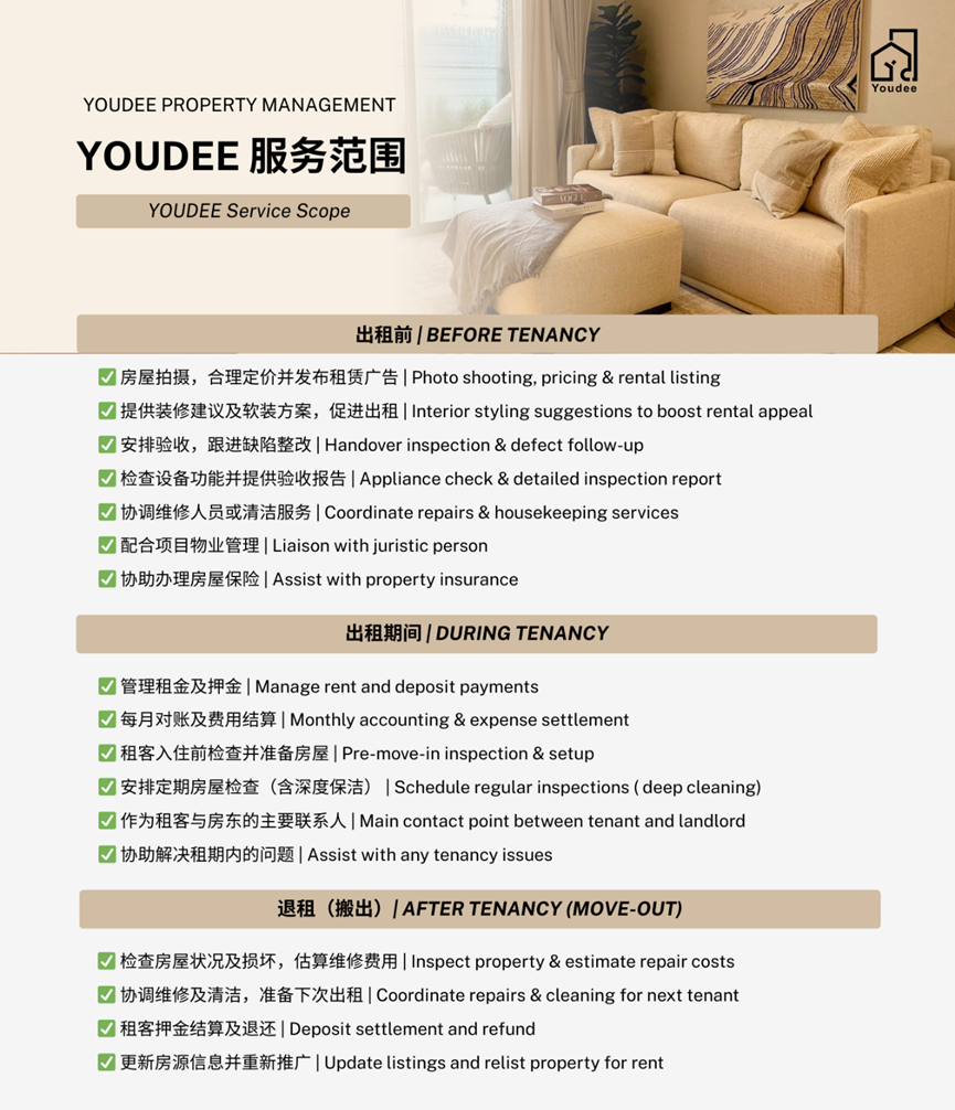 Management services cover tenant sourcing, rent collection, maintenance coordination, cleaning management, and bill reminders. These seemingly trivial details are exactly where overseas landlords encounter the most problems. Through unified management, the project turns the uncertainty of individual landlords into the certainty of standardized operations, making rental income depend on proven systems rather than personal experience.