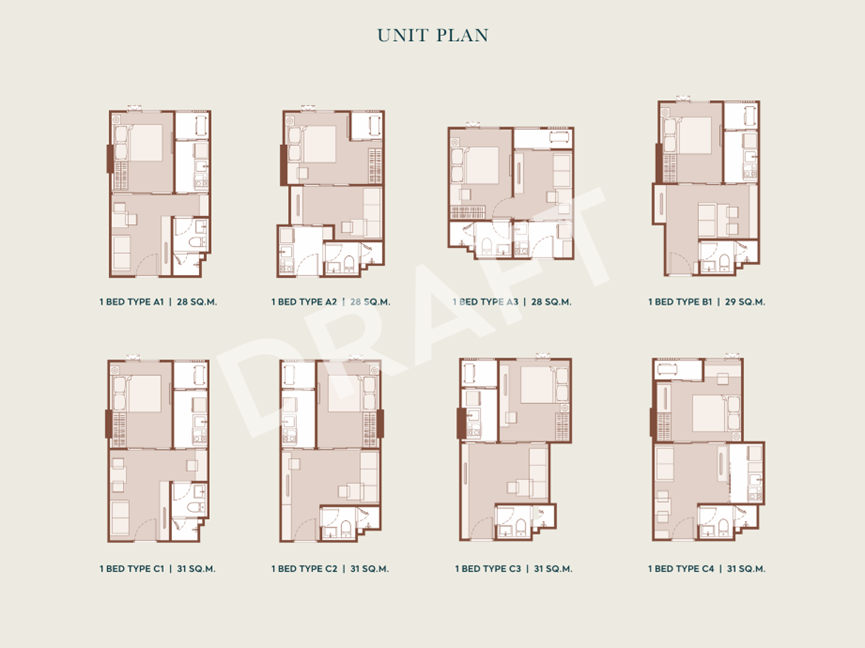 Life Ratchada–Rama 9 continues the Life series’ emphasis on efficiency over complexity. The main unit mix centers on one- and two-bedroom layouts, clearly tailored to the working population and rental demand in Rama 9.