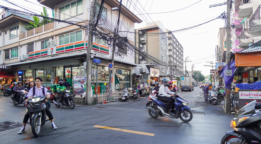 当然,这样的地段也有它非常明确的性格。拉差达 3 巷本身道路不算宽,摩托车和外卖骑手往来频繁,高峰时段会显得比较忙碌。如果追求极度安静、远离城市节奏的居住环境,这里并不是最合适的选择;但对于习惯城市生活、希望把时间留给工作和生活本身的人来说,这种热闹反而是一种效率。