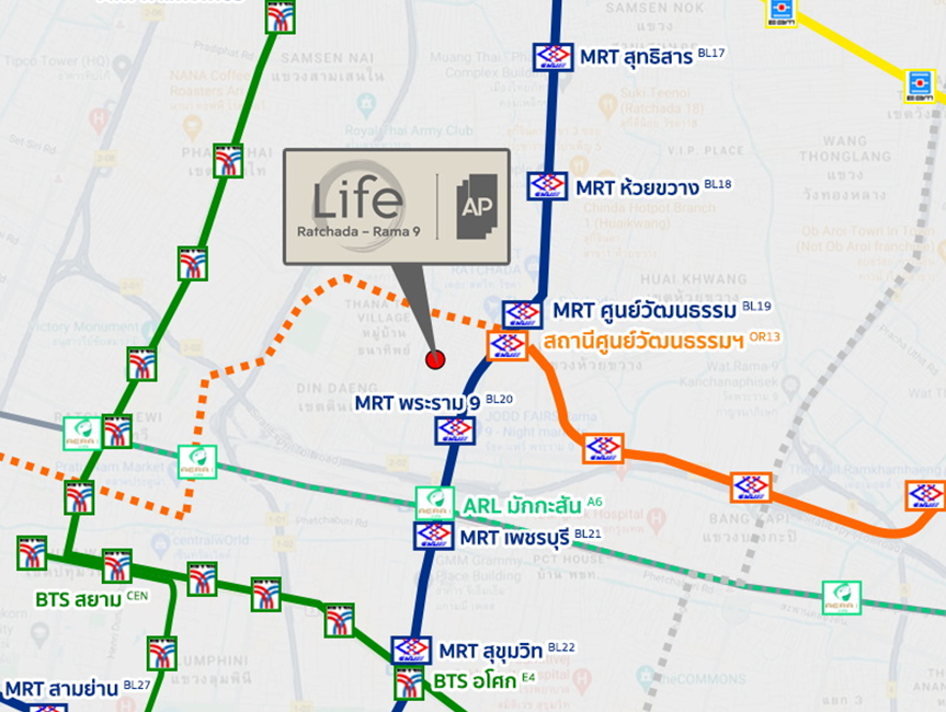 如果说 Rama 9 的优势在于工作机会密集,那么真正让人愿意长期住在这里的,是它已经非常成熟的交通结构。Life Ratchada-Rama 9 所在的位置,正好处在轨道交通与城市主干路交汇的核心圈层,无论你是日常通勤,还是需要频繁跨区出行,都能找到相对顺畅的方式。