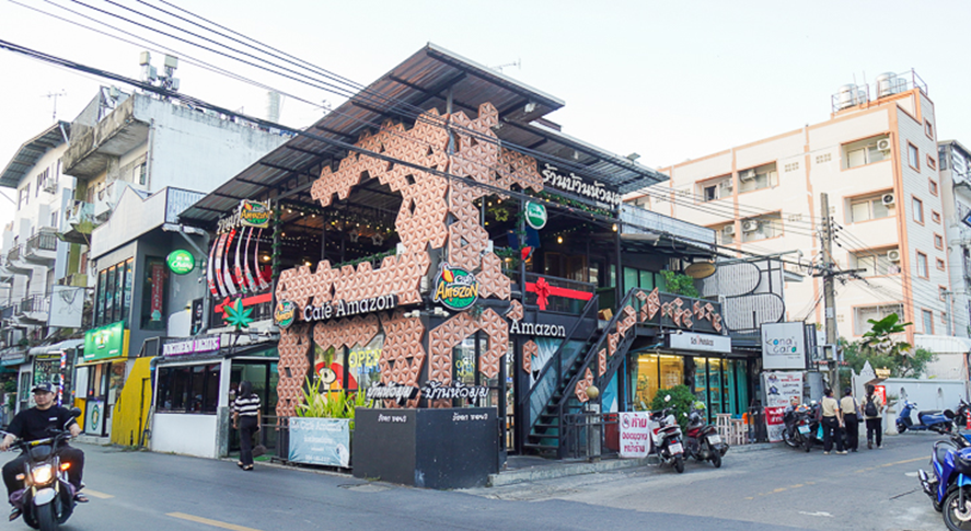如果真正走进拉差达披色 3 巷,你会很快意识到,这不是一条“安静型”的住宅小路,而是一条典型的城市生活巷道。从巷口开始,餐馆、便利店、咖啡店和各类小商铺就连续展开,一天从早到晚都有人流进出,生活气息非常浓。