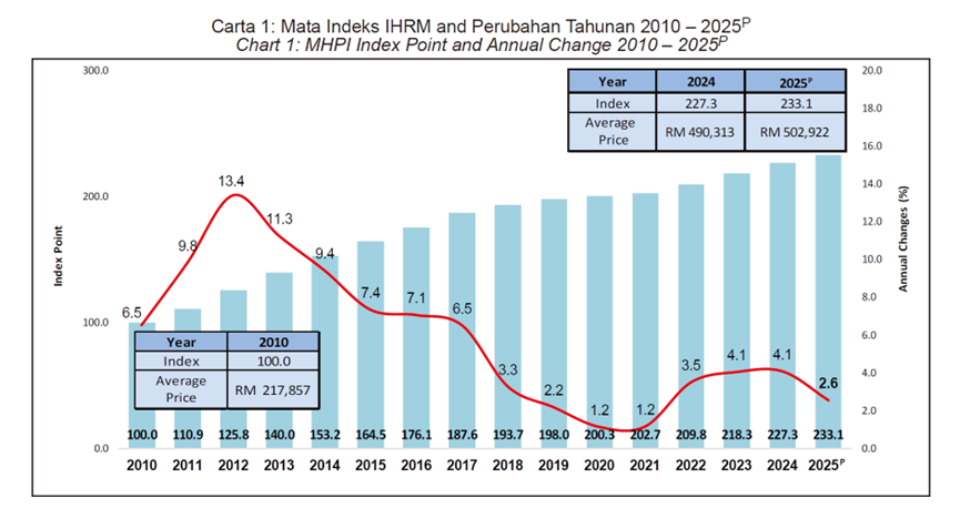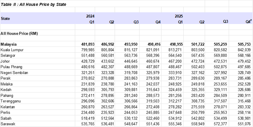 With housing prices continuing to rise, Malaysia’s national average house price surpassed RM500,000 for the first time in 2025, reaching RM502,922. Compared with RM490,313 in 2024, prices maintained moderate growth.