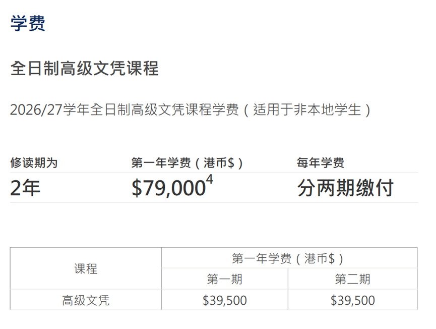 学费大约在:79,000港币 / 年